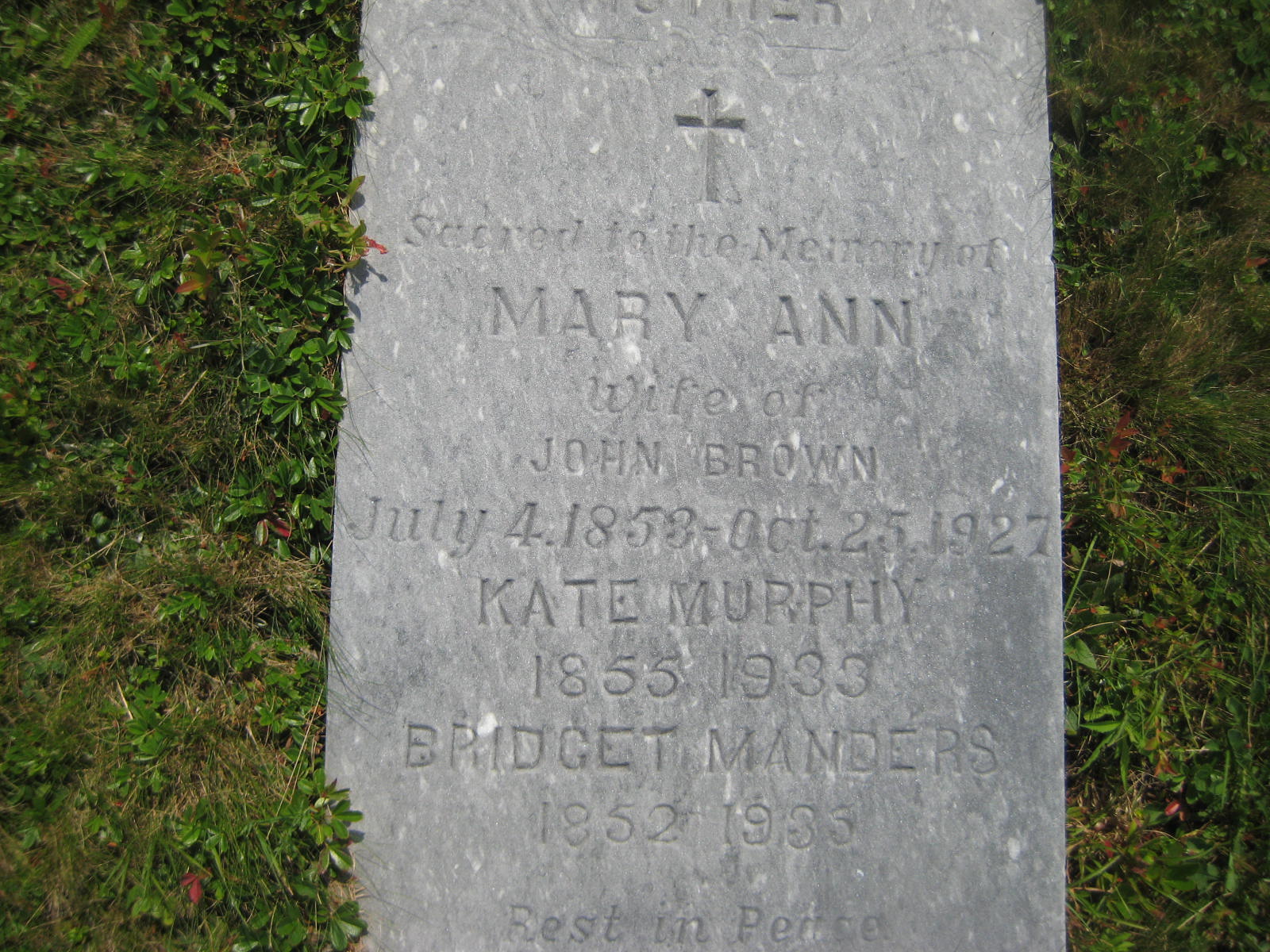 Brown, Mary Ann | 1 | F | 70 | 1853-07-04 | 1927-10-25 | | Y | |