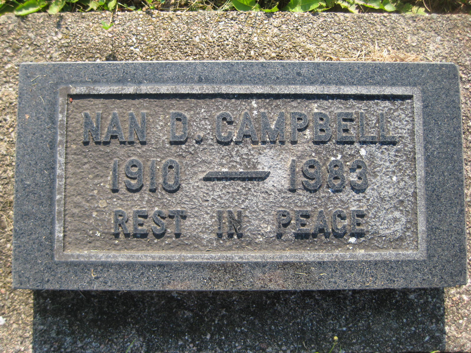Campbell, Nan D. | 3 | G | 8 | 1910 | 1983 | | Y | |