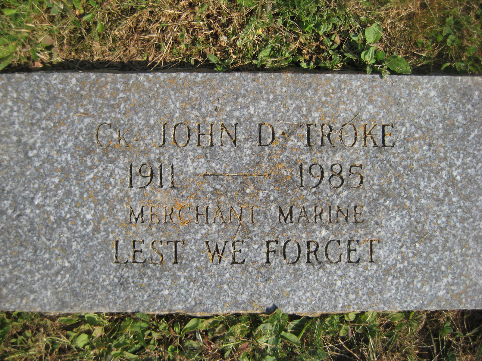 Troke, John David | 3 | Q | 4 | 1911 | 1985 | | Y | |