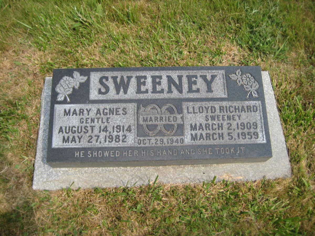 Sweeney, Mary Agnes (Gentle) | 3 | A | 25 | 1914-08-14 | 1982-05-27 | | Y | |