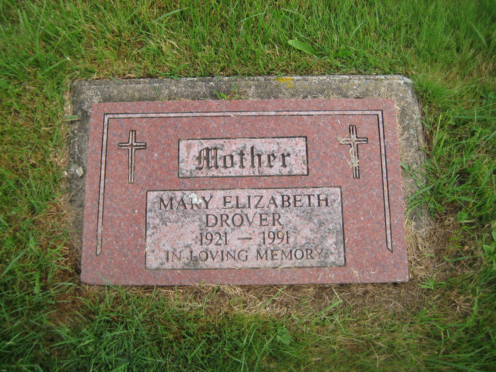 Drover, Mary Elizabeth | 3 | K | 17 | 1921 | 1991 | | Y | |